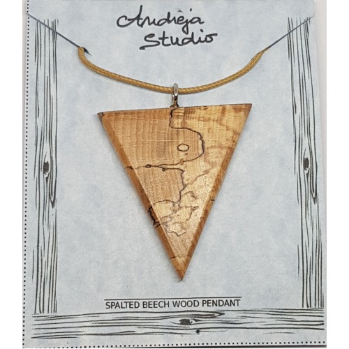 Triangle Spalted Beech Wood pendant on 1.5mm black cord with Lobster Clasp