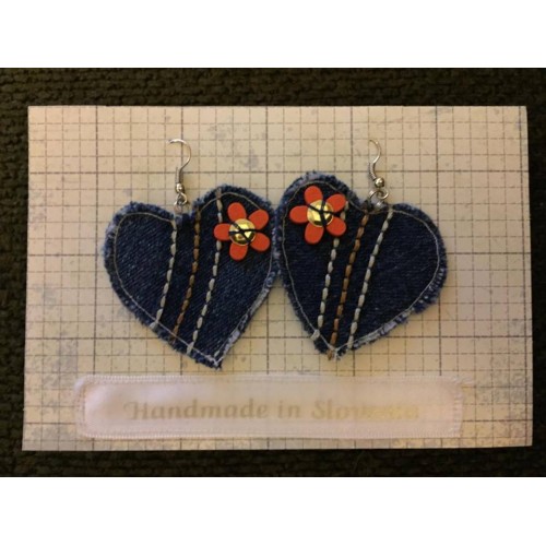 Denim Earrings - Heart with Flower